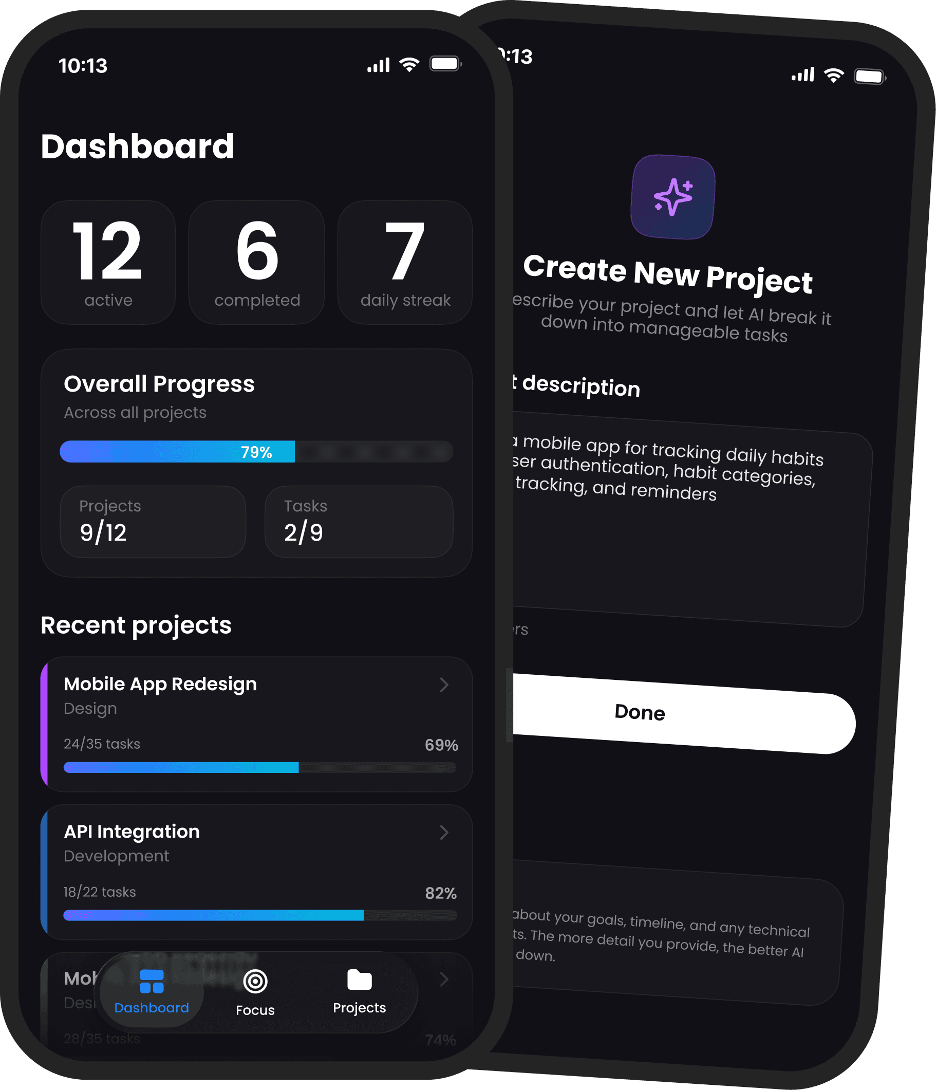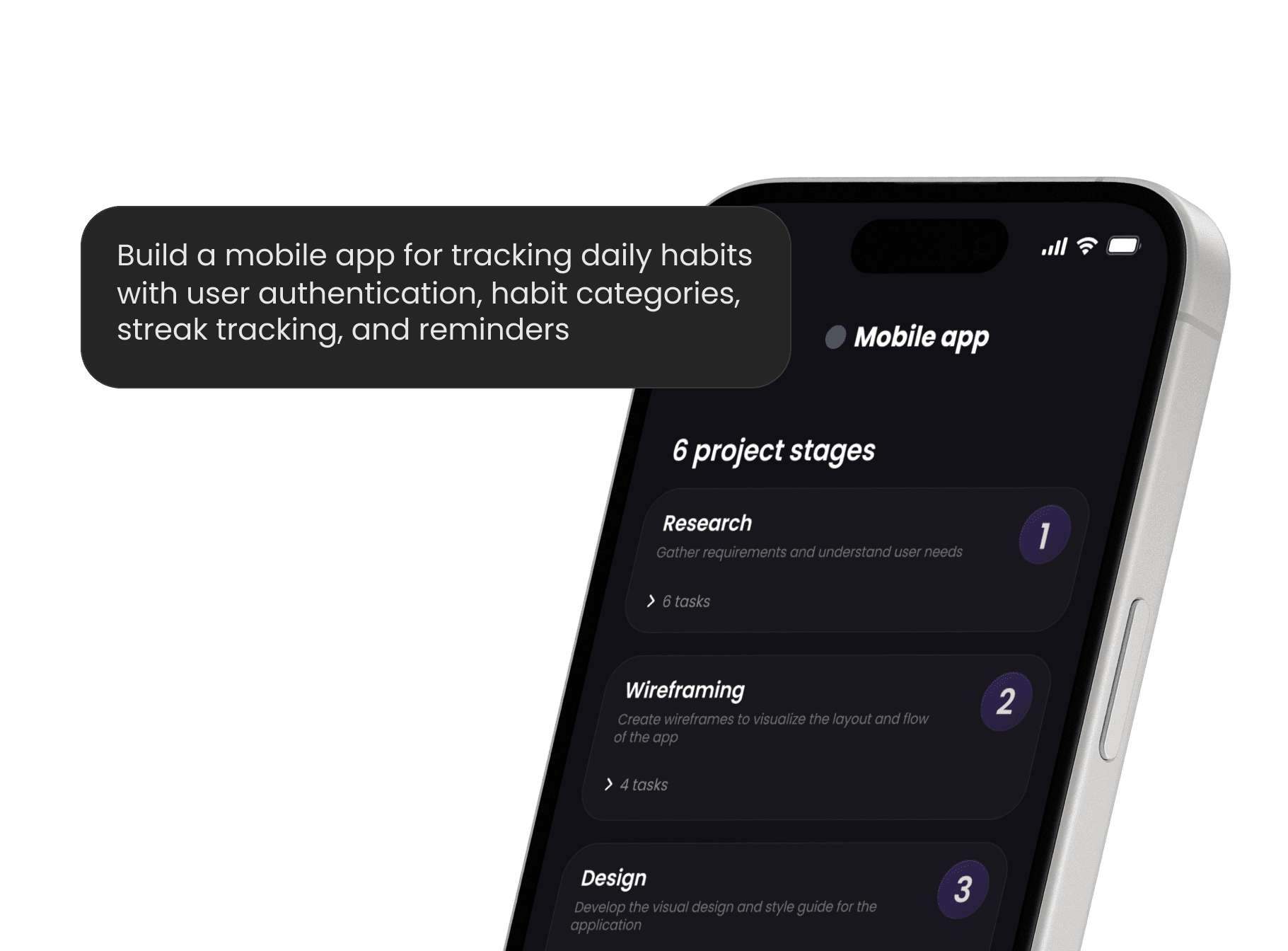 Turn overwhelming goals into structured stages and bite-sized tasks you can actually complete